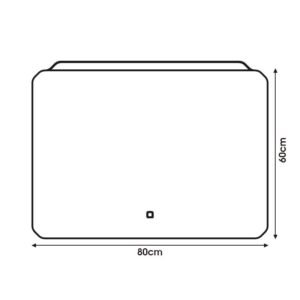 – Forma Rectangular. – Cristal de 5 mm. – Medidas: 60×80 cm. – Con iluminación LED. – Bordes redondeados.