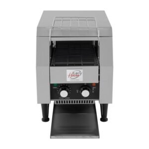– Tostadora profesional de cinta continua perfecta para grandes producciones en buffets y hoteles. – La cinta transnportadora lleva el pan lentamente por el interior de la máquina mientras recibe calor de las resistencias eléctricas. – Tuesta hasta 450 pcs por hora. – Bandeja dispensadora. – Velocidad de cinta regulable. – Potencia de tostado regulable….