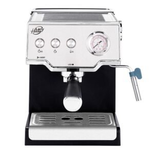 – Cafeterea espresso para preparar todo tipo de cafés con una potencia máxima de 850 W. – Bomba de alta presión de 15 bares. – Vaporizador para espumar leche totalmente automático y emitir agua para infusiones. – Depósito de agua de 1.6 litros. – Controla la presión en tiempo real gracias a su manómetro.