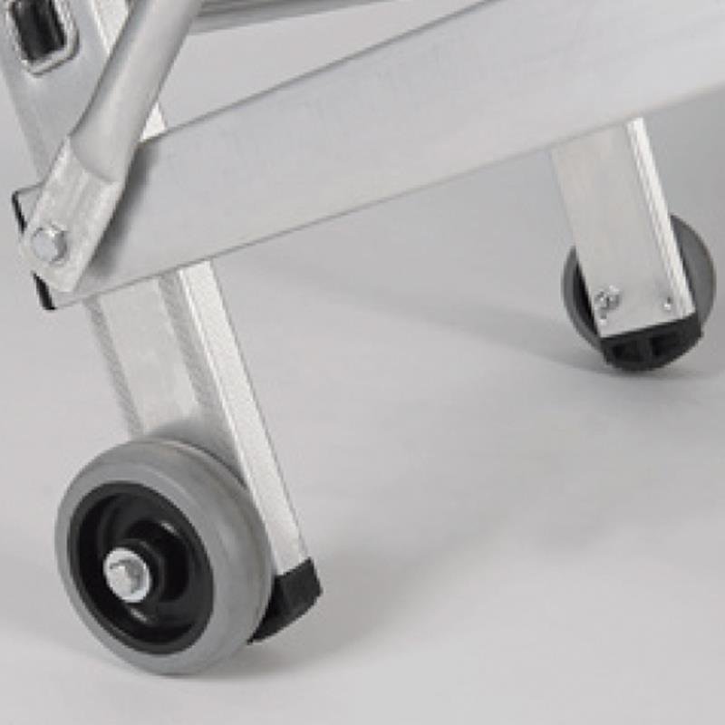 – 5 + 5 peldaños. – Altura máxima: 1.58 mts. – Medidas: 1.70 x 0.53 x 0.16 mts. – Normativa EN-131. – Peso: 12.50 kg.