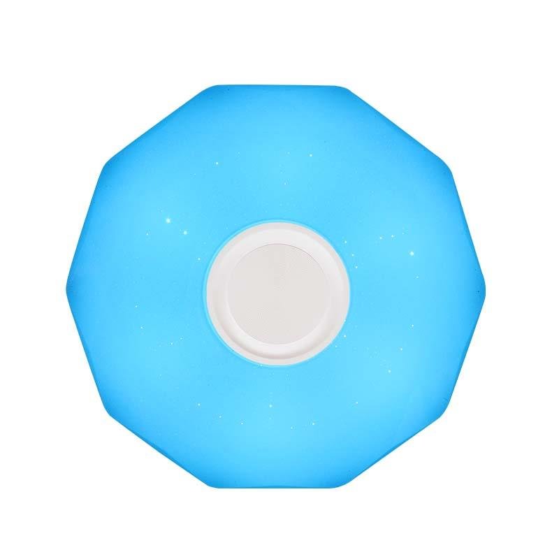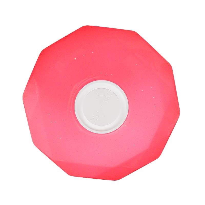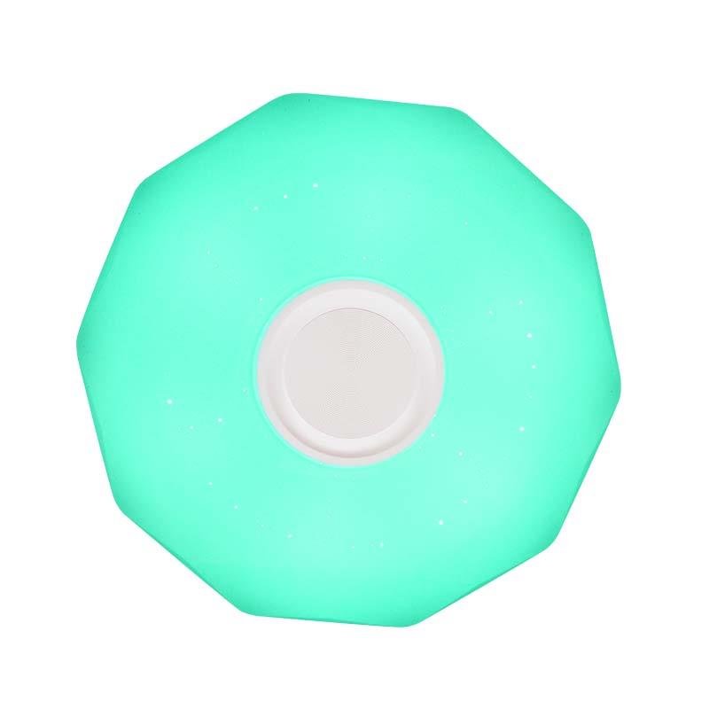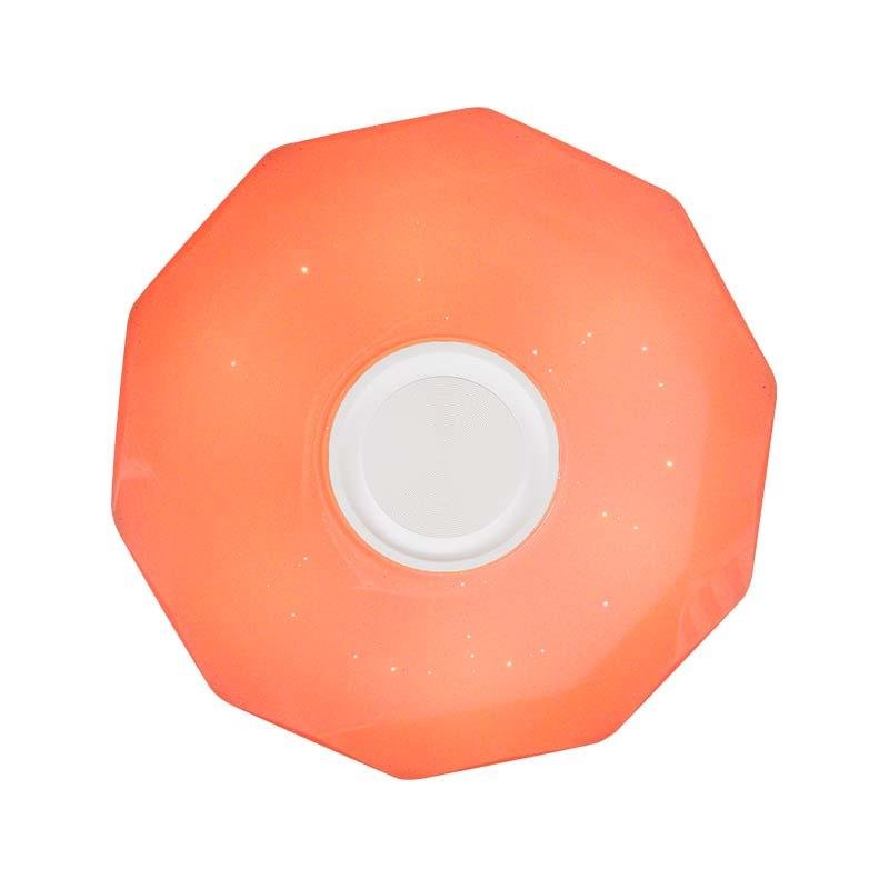 – Potencia: 24 W. – 1.440 Lumens. – Diámetro: 350 mm. – Ángulo iluminación: 230º. – 30.000 horas de vida. – 15.000 Encendidos. – Encendido inmediato. – Reproductor de música con solo conectar el bluetooth en su smartphone. – Proporciona una luz brillante y colorida. – 4 modos de iluminación (6.500K – 2.700K – 4.000K – luz de noche). – Incluye mando a distancia. – Cambio de color RGB. – A+.