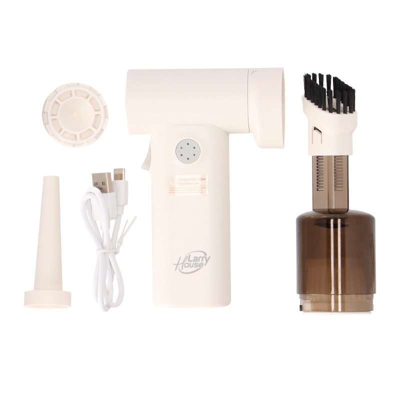 – Soplador-Aspirador portátil. – 3 velocidades. – Carga por USB. – Luz LED integrada. – Batería 2.500 mAh. – Incluye accesorios.