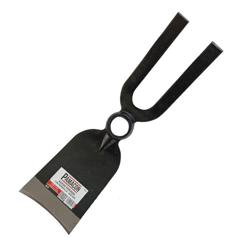 – Azada forjada de doble uso. – Fabricada en acero y forjada en una sola pieza. – Azada con filo recto para remover la tierra. – Horquilla para limpiar raíces. – Resistente y duradera. – Peso: 800 grs. – No incluye mango.