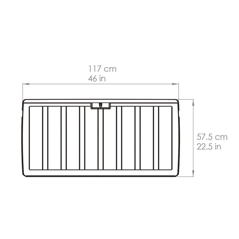 – Baúl plástico. – Ideal para usar en casa, jardín, oficina, garaje y trastero. – Su elegante diseño hace que combine perfectamente con otros muebles de jardín. – Capacidad: 270 litros. – Fácil de montar. – Color: negro. – Medidas: 117 x 45.5 x 57.5 cm.