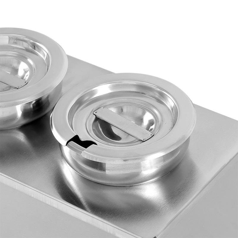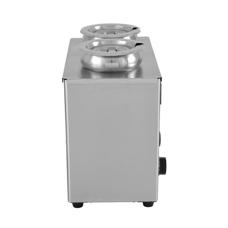 – Baño María Hotpot para calentar alimentos o cocinar destinado a la hostelería y restauración. – Perfecta para mantener calientes y listos los alimentos precocinados. – Dos ollas, cada una con una capacidad de 2,75 L. – Reguladores de temperatura giratorios. – Luces indicadoras.