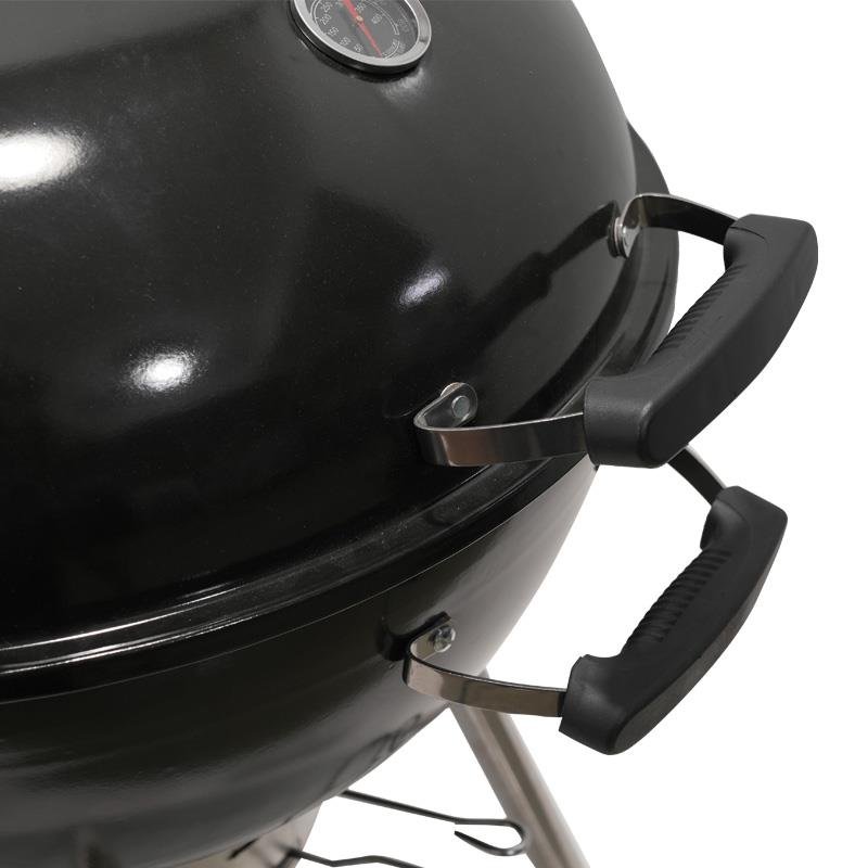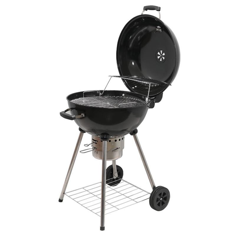 – Tapa con sistema de ventilación y termómetro para un asado perfecto. – Depósito recoge cenizas extraíble. – Fácil limpieza. – Ruedas y asas para un manejo cómodo. – Altura de cocción 75 cm. – Parrilla de cocción 53.5 cm. – Parrilla de carbón galvanizada de 42 cm. – Patas de acero inoxidable. – Medidas: 73.5x98x68 cm (Largo x Alto x Ancho).