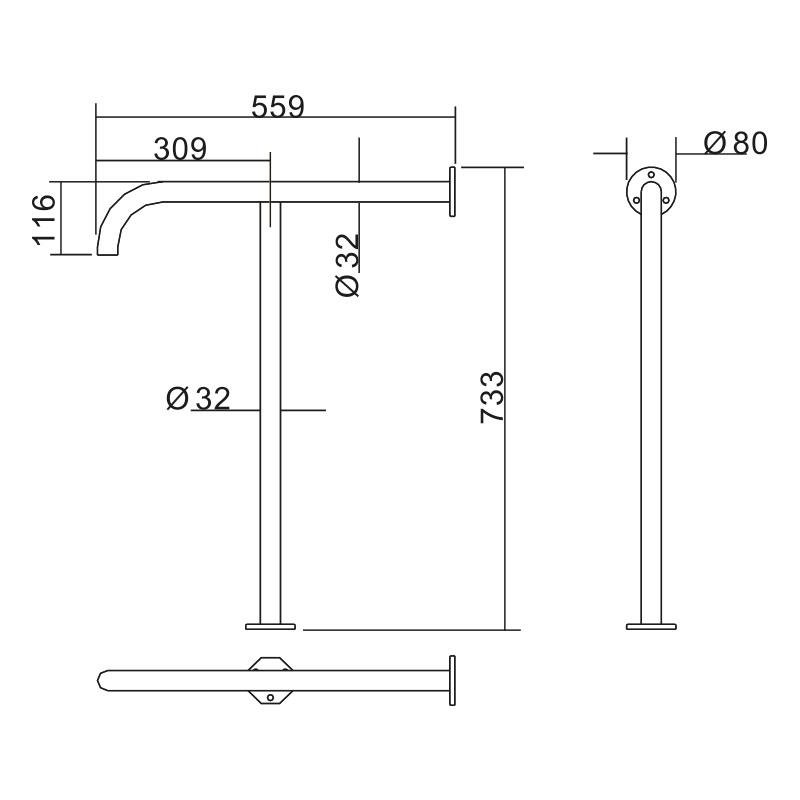 – Barra de apoyo para baños. – Fabricada en acero inoxidable 304. – Ideal para mujeres embarazadas, personas mayores o discapacitados. – Ofrece seguridad y facilita la movilidad en el baño. – Anclaje: 2 puntos. – Alto: 73.3 cm. – Diámetro: 3.2 cm. – Instalación en pared-suelo.