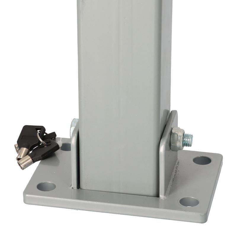 – Barrera de bloqueo para aparcamiento de vehículos. – Evita que otros vehículos utilicen plazas de aparcamiento reservadas. – Abatible. – La barrera se abre o cierra gracias al sistema de bisagras de su base. – Tubo cuadrado de 7×7 cm. – Fijación al suelo mediante tornillos (no incluidos). – Medidas: 78×90 cm (Ancho x Alto).
