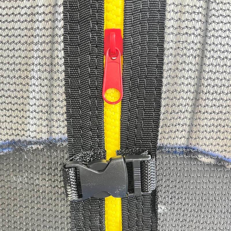– Trampolín con acolchado firme de postes y red de seguridad. – Escalera de acceso. – Lona antidesgarro y muelles resistentes. – Estructura de acero. – Hebillas de seguridad y cremallera de doble cara. – Alto nivel de elasticidad. – Fácil montaje. – Altura de la red de salto sobre el suelo: 85 cm. – Diámetro de la lona de salto: ¯366 cm. – Altura de la red: 180 cm. – Peso máximo soportado: 150 kgs.