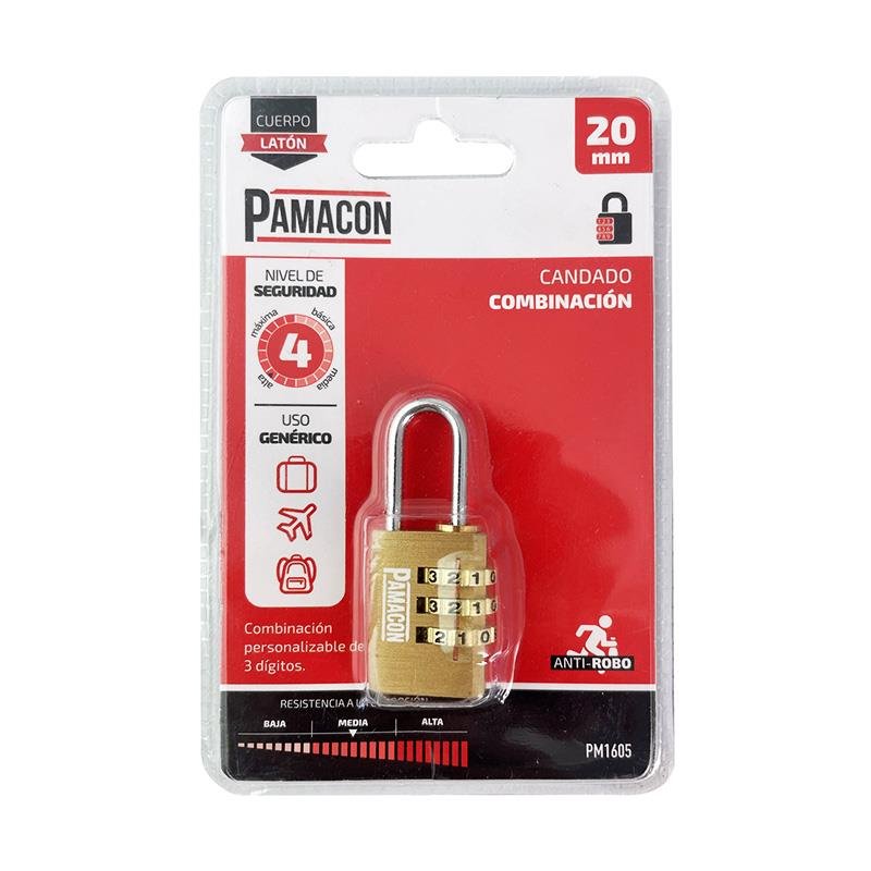CANDADO COMBINACION LATON 20MM PAMACON