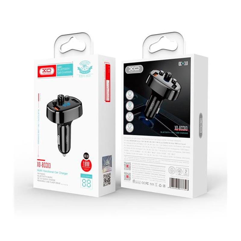 CARGADOR DE COCHE FM BLUETOOTH QUICK CHARGE 3.0 NEGRO XO