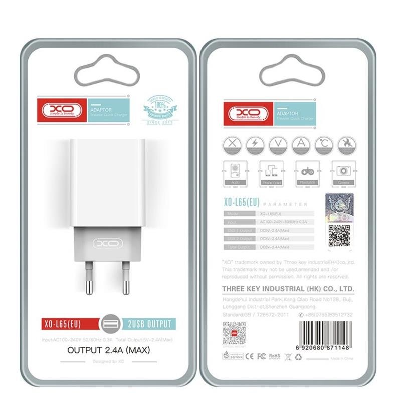 CARGADOR DE CORRIENTE L65 TWO USB 2.4A XO