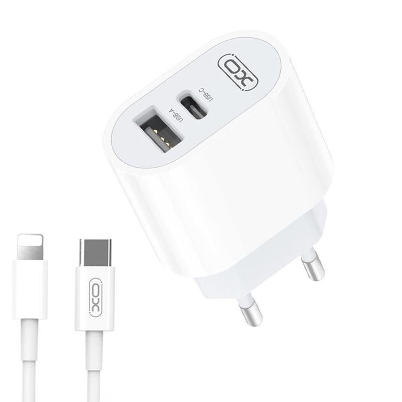CARGADOR RAPIDO TIPO C + USB + LIGHTNING BLANCO XO