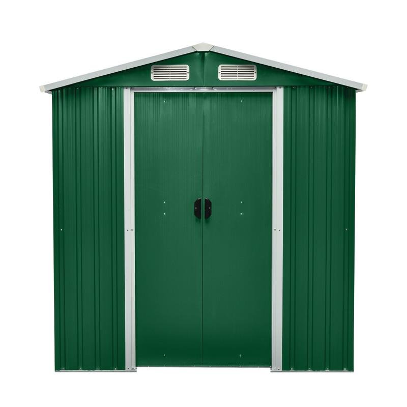 – Caseta metálica de color verde de 3.4m≤. – Perfecta para guardar herramientas, bicicletas, equipos u otros objetos que necesiten estar protegidos de la intemperie. – Paneles de acero galvanizados de 0.25 mm de espesor. – Techo inclinado para evitar que el agua se acumule y estanque. – Puerta corredera. – Salidas de aire. – Incluye refuerzos de techo y pared para mayor resistencia. – Incluye base de metal. – Medidas: 174x194x200 cm. – Fácil montaje y mantenimiento.