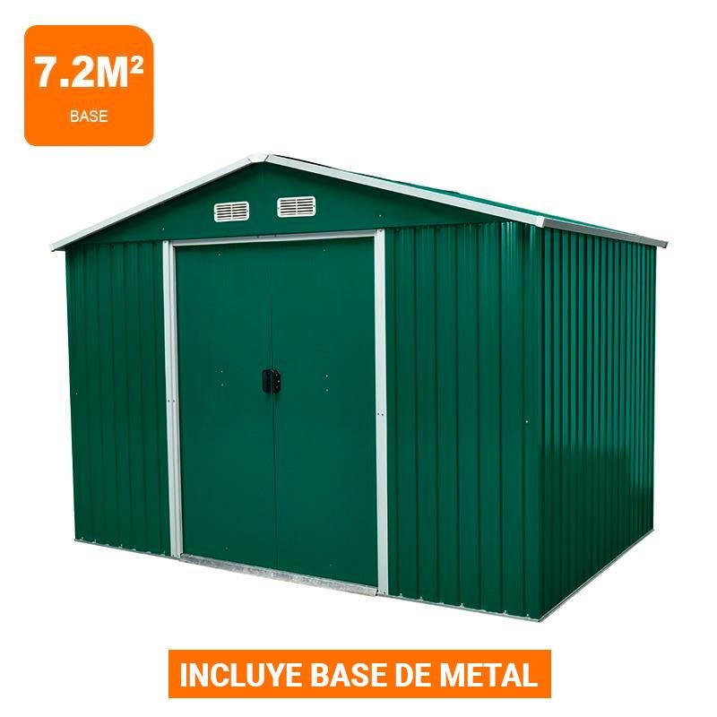 – Caseta metálica de color verde de 7.2m≤. – Perfecta para guardar herramientas, bicicletas, equipos u otros objetos que necesiten estar protegidos de la intemperie. – Paneles de acero galvanizados de 0.25 mm de espesor. – Techo inclinado para evitar que el agua se acumule y estanque. – Puerta corredera. – Salidas de aire. – Incluye refuerzos de techo y pared para mayor resistencia. – Incluye base de metal. – Medidas: 301x238x214 cm. – Fácil montaje y mantenimiento.