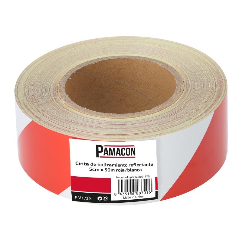CINTA DE BALIZAMIENTO REFLECTANTE ROJA/BLANCA PAMACON 5 CM X 50 METROS