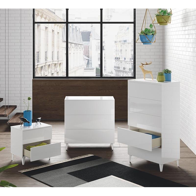 CÓMODA 5 CAJONES 117X61X40CM BLANCO BRILLO MOMI