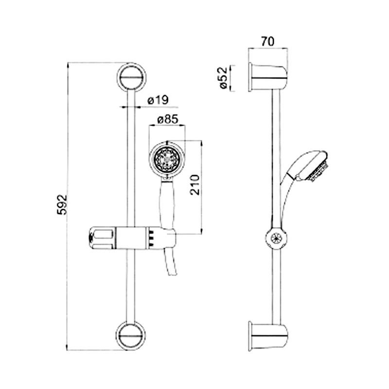 – Conjunto de ducha serie Hawai. – Pasador con soporte giratorio, ajustable en altura. – Manguera flexible, de acero inoxidable (1.5m). – Soporte de acero inoxidable. – Antical. – Mango de ducha cromado. – Sujeción universal. – Boquillas de goma termoplásticas con soporte ABS.