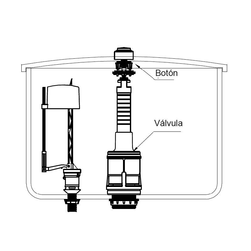 – Mecanismo de descarga cisterna baja. – Contiene pulsador de descarga acabado cromado. – Fácil instalación. – Rosca universal.
