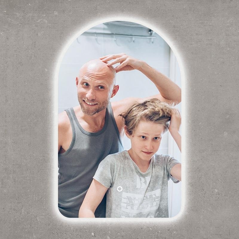 – Fantástico espejo de forma semicircular. – Incorpora iluminación LED. – Bordes redondeados. – Interruptor de sensor táctil.