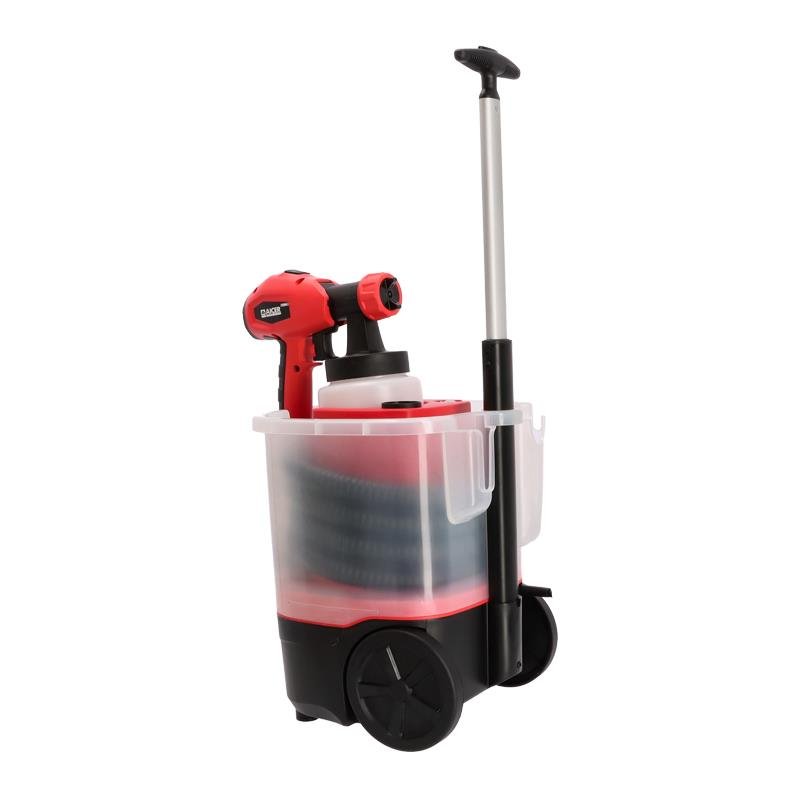 – Estación de pintura eléctrica. – Gran alcance y manejo sencillo. – Aplicación óptima de pintura para exteriores e interiores. – Liberación rápida para una fácil y rápida limpieza. – Sistema trolley para facilitar su transporte. – Tres patrones de spray. – Cobertura rápida y equitativa. – Control de flujo de pintura ajustable. – Filtro de aire de cambio rápido.