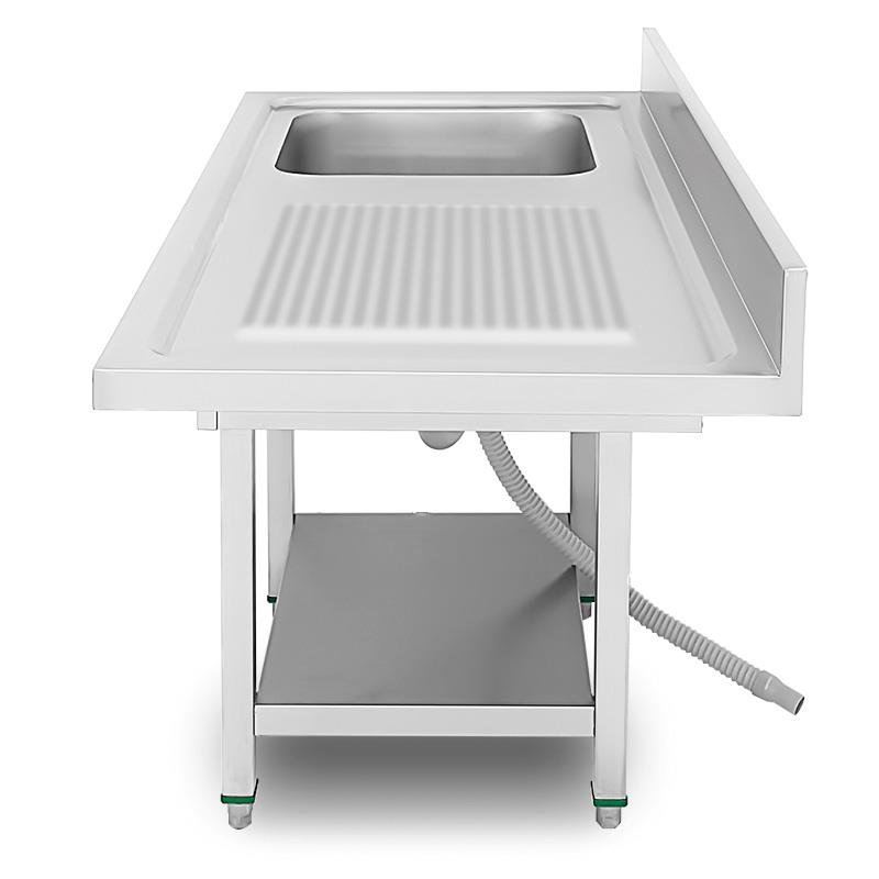 – Fregadero con plataforma y estante inferior inferior. – Construido completamente en acero inoxidable, fuerte y duradero. – Fregadero a la izquierda. – Diseñado para cocinas industriales, hostelería o pastelerías. – Material resistentente a la corrosión. – Con un estante inferior para almacenar básculas, tablas de cortar, utensilios y otros electrodomésticos pequeños para siempre tenerlos a mano. – Tamaño del fregadero: 500x500x250 mm. – Medida total: 1400x700x850 mm.