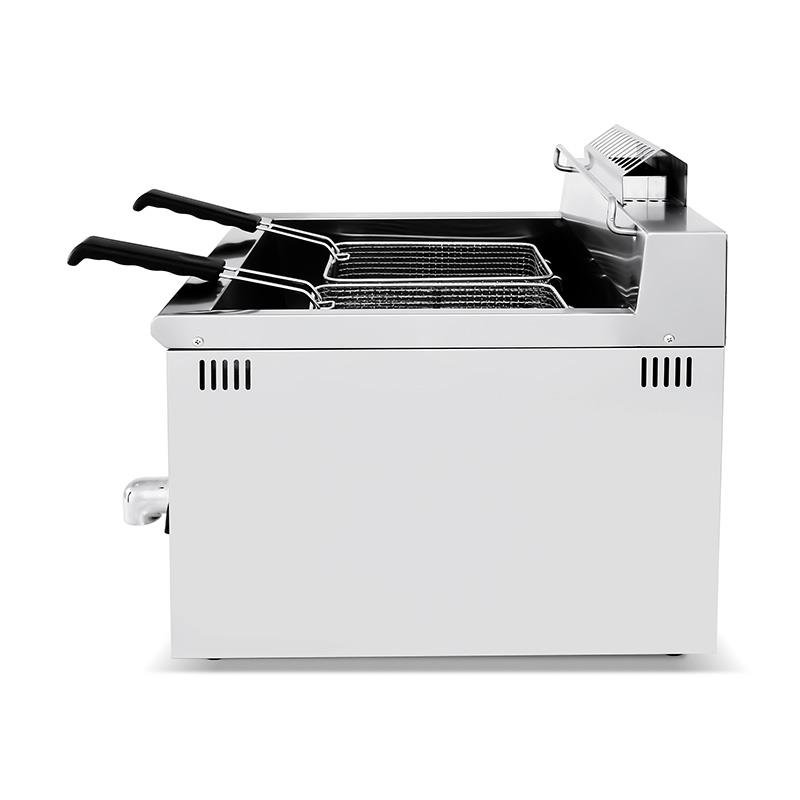 – Freidora a gas con doble cesta diseñada para uso profesional. – Ideal para hostelería, restaurantes o bares. – Cuerpo y acabados en acero inoxidable. – Válvula de vaciado de aceite. – Controlador de temperatura. – Presión de gas: 2800 pa. – Tipo de gas: GLP. – Limitador de temperatura. – Patas antideslizantes. – Medidas: 50.5x58x48 cm. – Peso: 23 kg.