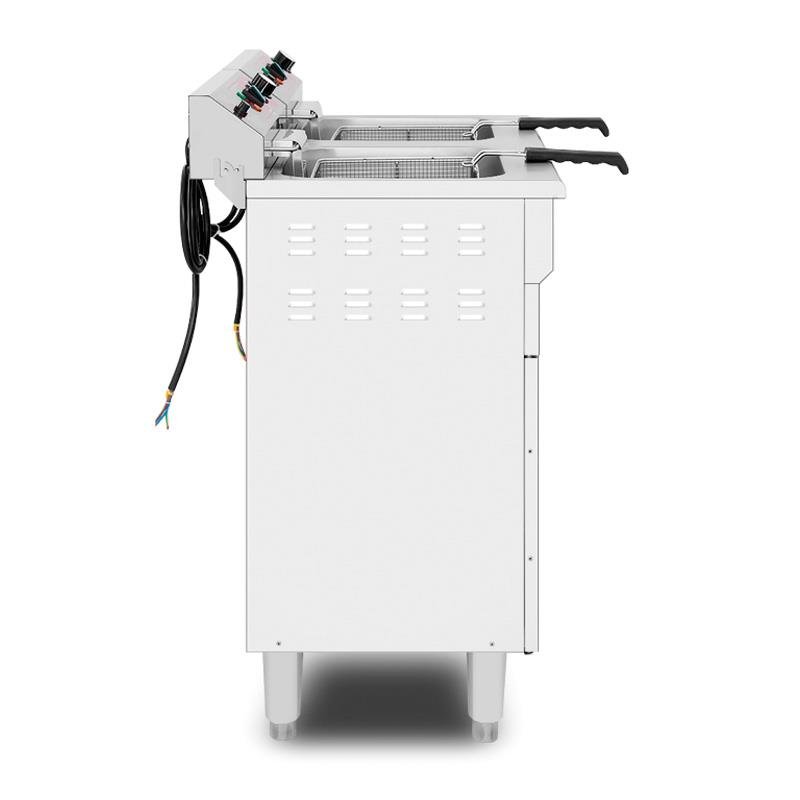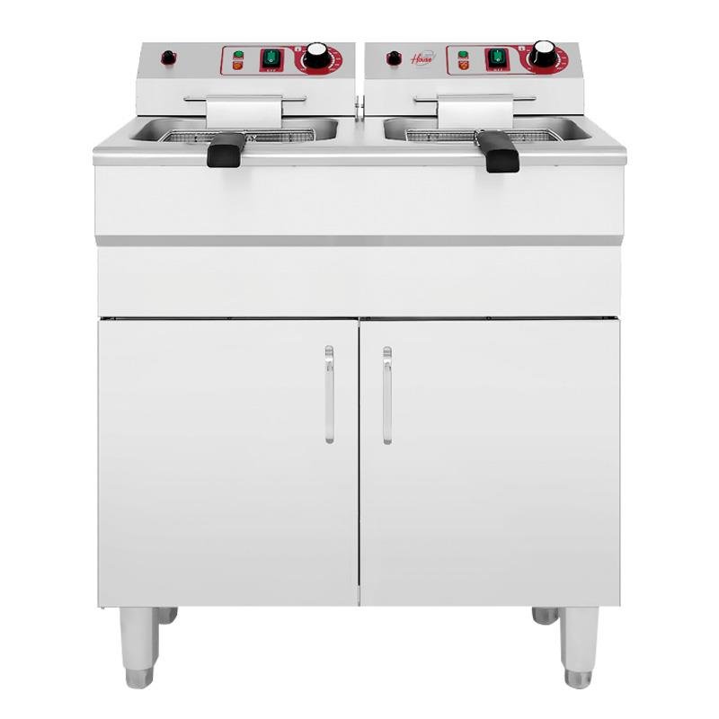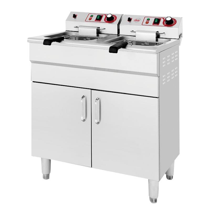 – Freidora eléctrica diseñada para uso profesional. – Ideal para hostelería, restaurantes o bares. – Con dos cestas independientes de 16L cada una. – Cuerpo y acabados en acero inoxidable. – Válvula de vaciado de aceite. – Indicadores luminosos. – Medidas: 73x58x95 cm.