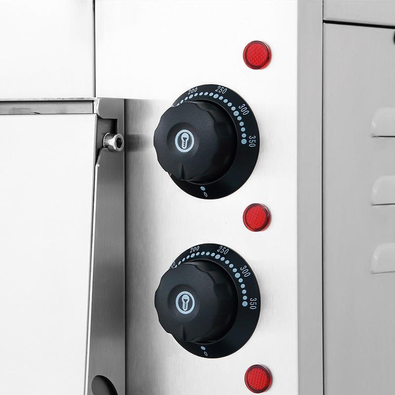 – Horno profesional para pizzas destinado a negocios hoteleres o restaurantes. – Termostatos regulables. – Ventanas en las puertas. – Admite pizzas de hasta 40 cm de diámetro. – Temporizador 0 – 120 min. – Vidrio templado de 5 mm de grosor. – Luces indicadoras.