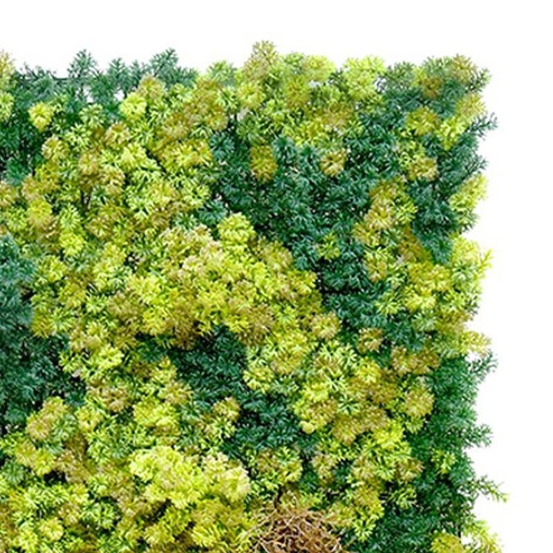 – Jardin vertical artificial, ideal para terrazas, balcones, paredes, techos, columnas, etc. – Fabricado con hojas artificiales unidas a una malla no apreciable una vez instalada. – Perfecto para decorar espacios interiores y exteriores. – Polietileno 100% reciclable. – Dimensiones: 100×100 cm. – Se puede cortar. – Fácil de instalar.