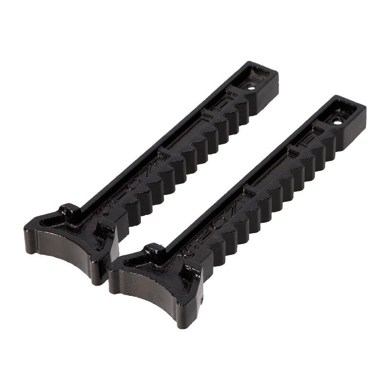 – Juego de dos caballetes. – Regulables en altura. – Altura máxima: 58 cm. – Altura mínima: 38.8 cm. – Capacidad de carga: 6.000 Kgs.