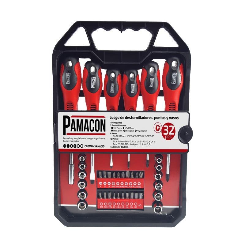 JUEGO 32 PCS DESTORNILLADORES Y PUNTAS PAMACON