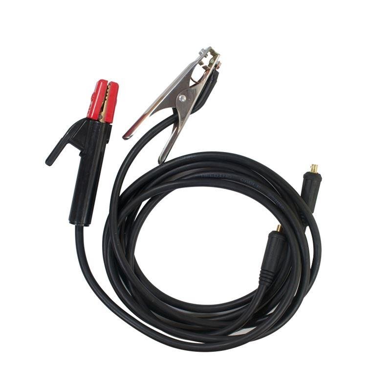 – Pinza Portaelectrodos 300 Amp + 3 metros cable 25mm. – Pinza de Masa 300 Amp + 2 metros cable 25mm. – Bornes incluidos.