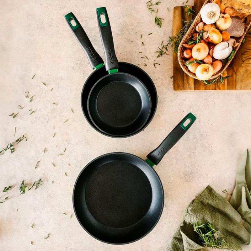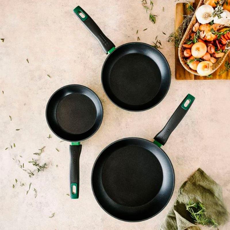 – Juego de 3 sartenes fabricados en aluminio forjado. – Tres tamaños de sartenes: 18-22-26 cm de diámetro. – Colección pensada en la protección de la naturaleza y sostenibilidad. – Incorporan recubrimiento bicapa antiadherente XYLAN de PPGÆ, libre de PFOA, resistente y duradera. – Cuentan con un fondo FULL INDUCTION con base de transmisión magnética súper eficiente en cocinas de inducción. – Aptas para todo tipo de cocinas. – Fondo de gran espesor. – Facilidad de limpieza.