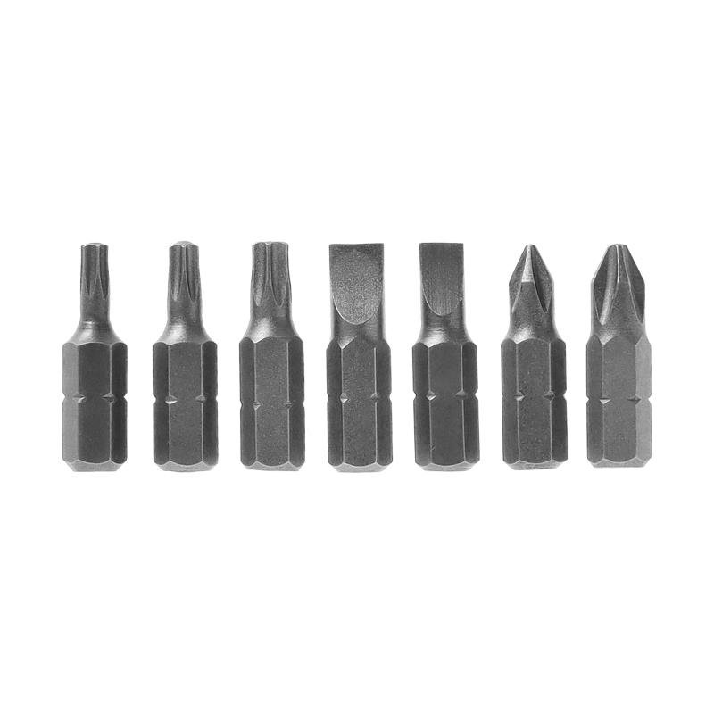 – Juego de destornillador 7 en 1. – El portabrocas magnético de liberación rápida proporciona un cambio de brocas rápido y seguro.