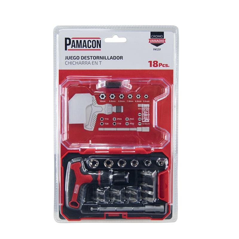 JUEGO DESTORNILLADOR CHICHARRA EN T 18 PCS PAMACON