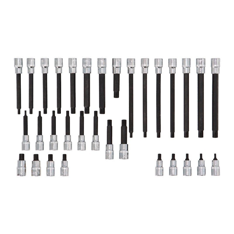 – Juego de puntas RIBE. – 55 mm: M5, M6, M7, M8, M9, M10, M12, M13, M14. – 100 mm: M5, M6, M7, M8, M9, M10, M12, M13, M14. – 140 mm: M7, M8, M9, M10, M12, M13, M14. – 200 mm: M7, M8, M9, M10, M12, M13, M14. – Cromo vanadio.