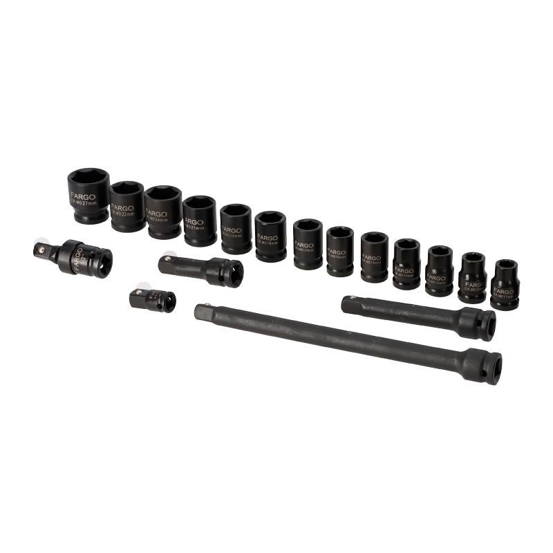 JUEGO VASOS + ADAPTADORES IMPACTO 1/2″ FARGO TOOLS 19 PCS