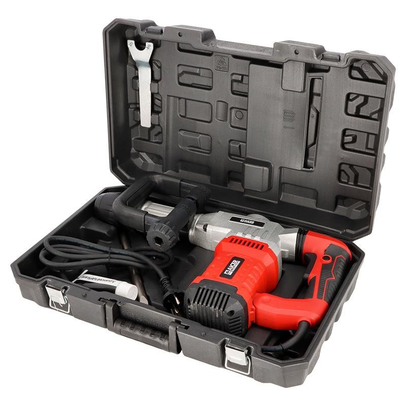 – Martillo rompedor eléctrico SDS-MAX. – Diseño potente y ligero al mismo tiempo. – Perfecto para trabajos de construcción. – Adecuado para cincelar hormigón, piedra y yeso. – Sistema de lubricación con empaque de grasa. – Cuenta con tope de profundidad. – Empuñadura auxiliar que gira 360º lo que permite un fácil manejo de la herramienta en cualquier posición. – Incluye 2 cinceles: – Cincel puntero 18x320mm. – Cincel plano 18x320mm. – Incluye estupendo maletín de ABS perfecto para guardar y transportar la herramienta.