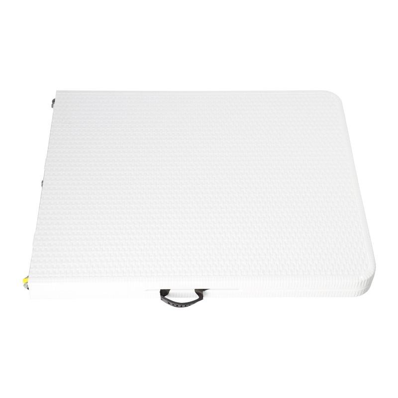 – Mesa de resina de 4,0 cm. – Estructura de acero pintado. – Capacidad para 6/8 personas. – Plegable con asa para fácil transporte y almacenaje. – No requiere mantenimiento. – Ideal para celebraciones, camping, terraza y jardín. – Color blanco. – Medidas: 180 x 74 x 74 cm (Largo x Ancho x Alto).
