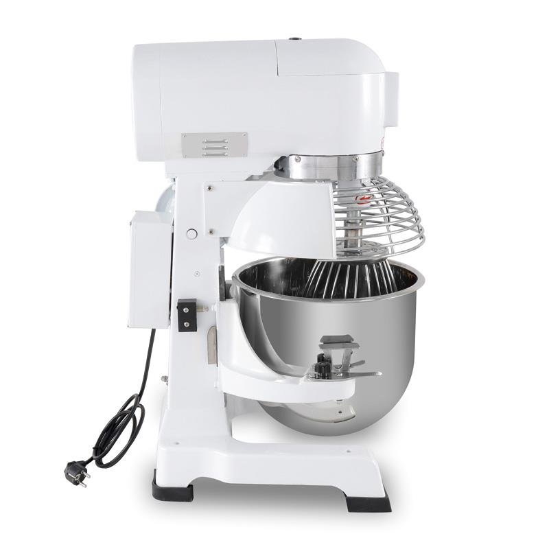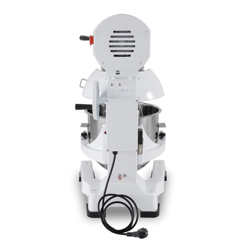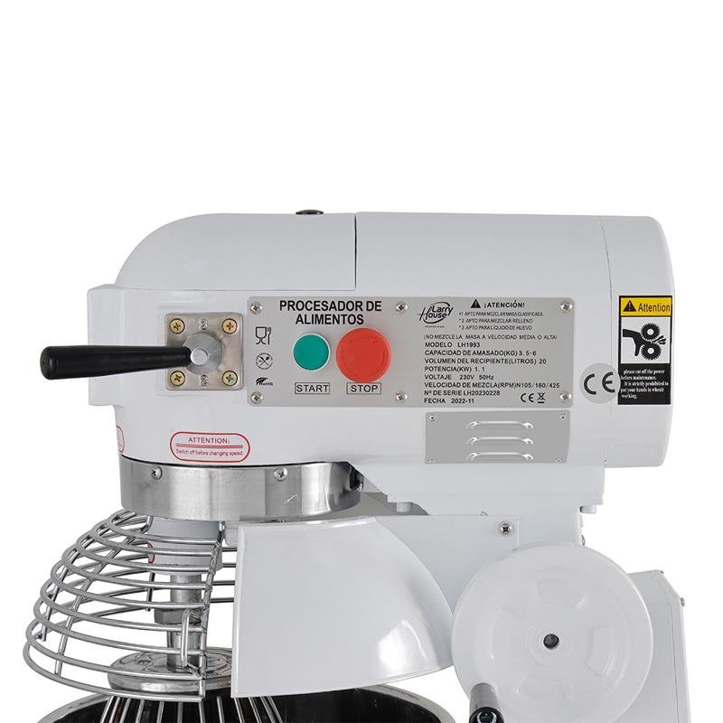 – Amasadora planataria profesional para uso intensivo, ideal para pastelerías, panaderías, pizzerías, etc. – Su capacidad máxima es de 3 kg de harina. – Volumen de recipiento 20L. – Botón de parada de seguridad. – Velocidad regulable. – Base de acero. – Apto para mezclar masa clasificada. – Apto para mezclar relleno. – Apto para mezclar liquido de huevo. – No mezcle la masa a velocidad media o alta. – Potencia 1.1Kw. – Voltaje 230v – 50Hz – Velocidad de mezcla: N105/180/425 RPM.