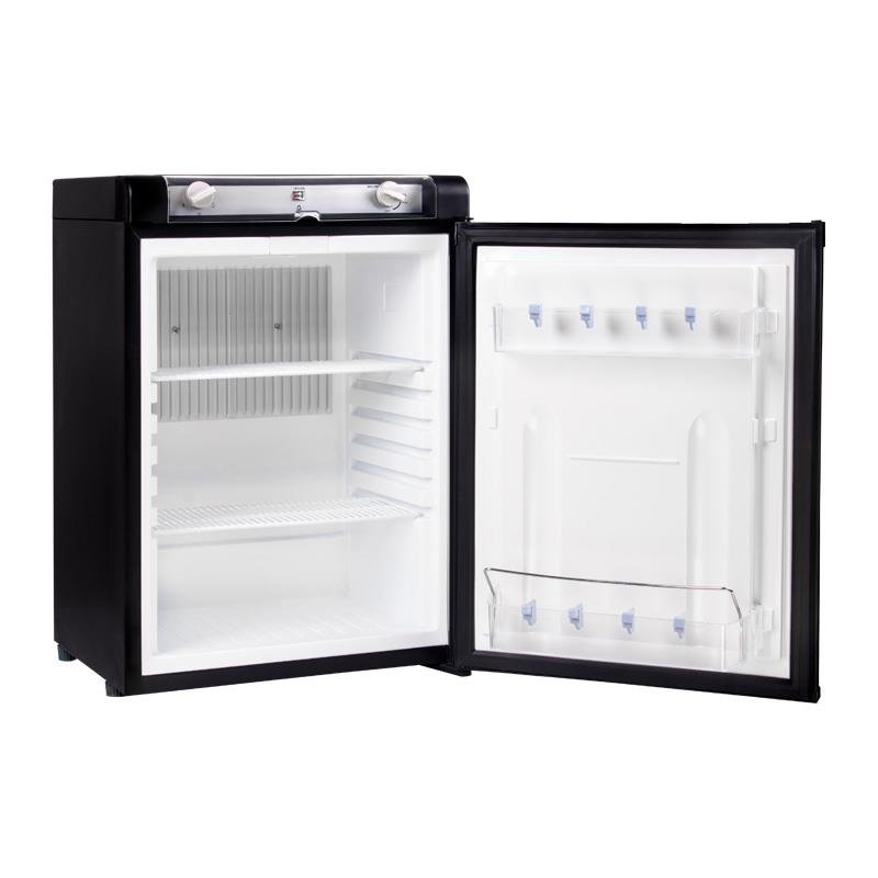 – Nevera trivalente útil y versátil, permite mantener el frío a tráves de tres vías diferentes de suministro: 220V, 12V o GAS. – Perfecta para furgonetas, embarcaciones o caravanas gracias a su tamaño óptimo. – Funcionamiento silencioso. – Modo nocturno. – Termostato regulable digital. – Puerta reversible. – Entrada de gas: LPG/NG. – Refrigerante: NH3. – Salida de agua de descongelación. – Peso: 23.5 kg. – Medidas: 46×47.5×71.5 cm.