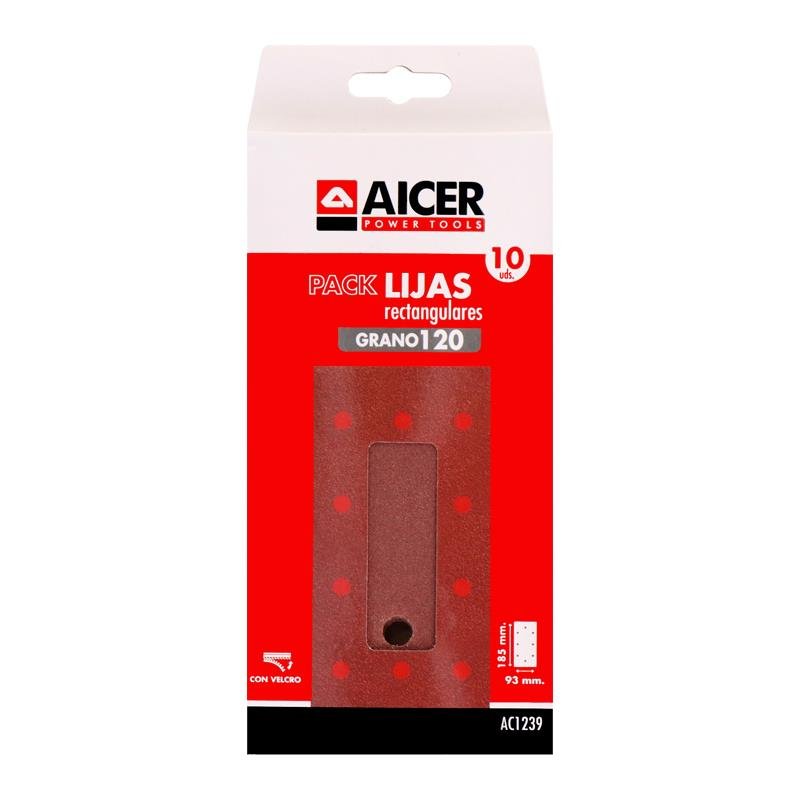 PACK 10 LIJAS RECTANGULARES 93X185MM GR.120 AICER