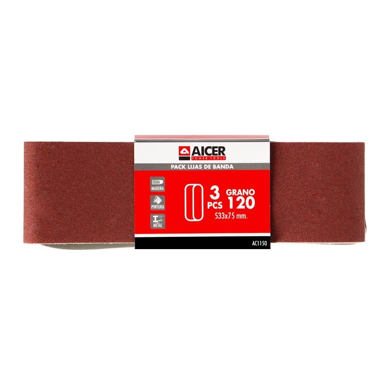 PACK 3 LIJA GR120 BANDA 533X75MM AICER