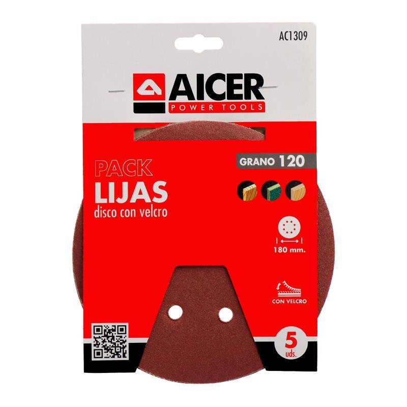 PACK 5 LIJAS 180MM GR120 VELCRO AICER