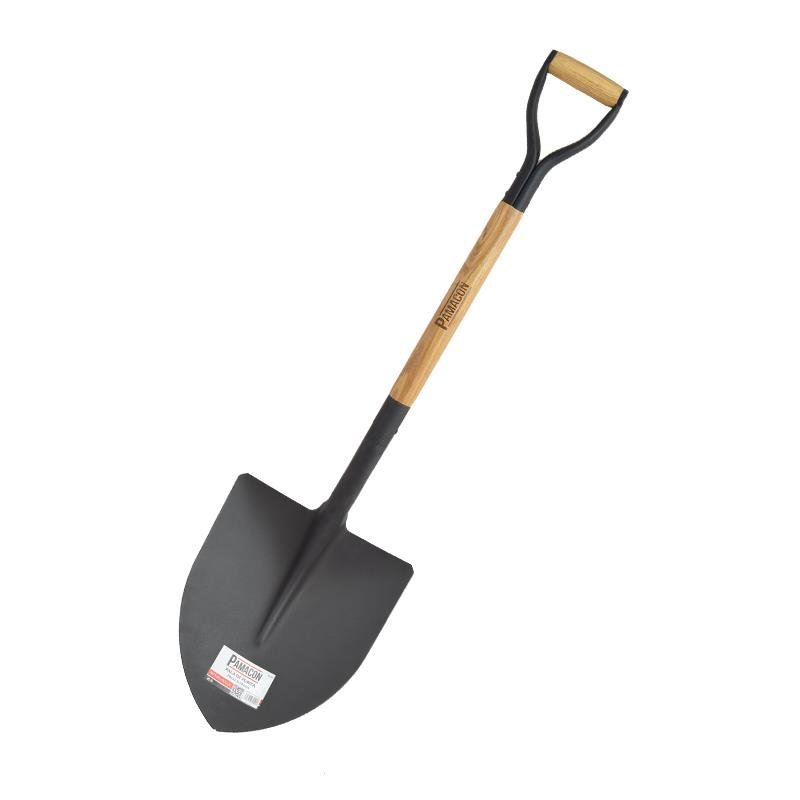 – Pala punta redonda. – Mango de madera dura. – Mango en forma de anilla. – Dimensiones: 29×33.5×102 cm. – Empleo en construcción. – Peso: 1.35 kg.