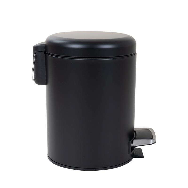 – Papelera de baño con pedal de apertura. – Capacidad de 5 litros. – Descenso progresivo. – Cesta interna con asa extraible y lavable. – Antihuella. – Acabado negro mate.