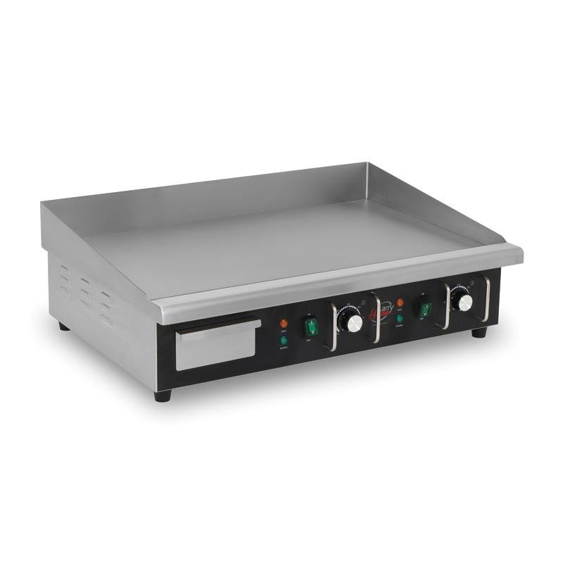 – Potente plancha eléctrica para uso intensivo y profesional. – Ideal para bares, cafeterías o restaurantes. – Cuerpo de acero inoxidable que garantiza una larga durabilidad y resistencia. – Placa lisa. – Doble control de temperatura con termostato de hasta 300ºC. – Bandeja recoge grasas. – Superficie antiadherente. – Luz indicadora de encendido. – Fácil de limpiar.
