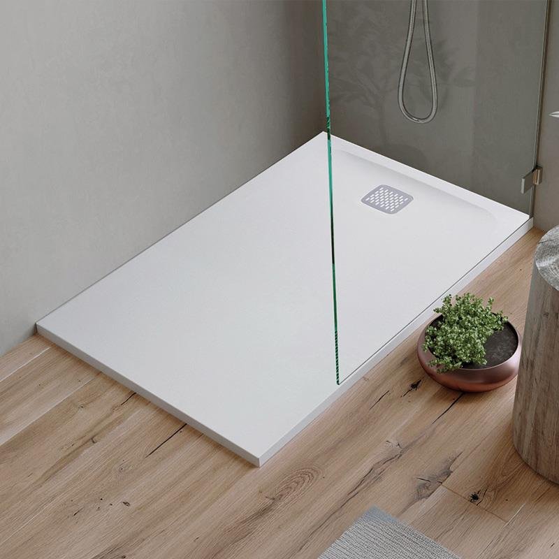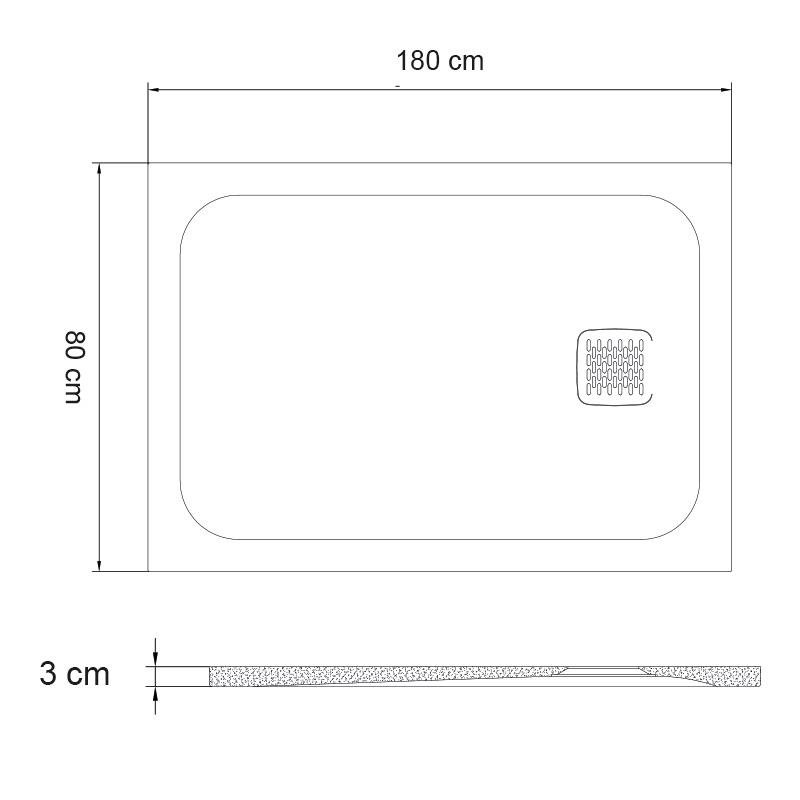 – Plato de ducha de carga mineral extra plano. – Superficie mate con textura en piedra, color blanco. – Macizo. – Antibacteriano. – Medidas: 180 x 80 x 3 cm.