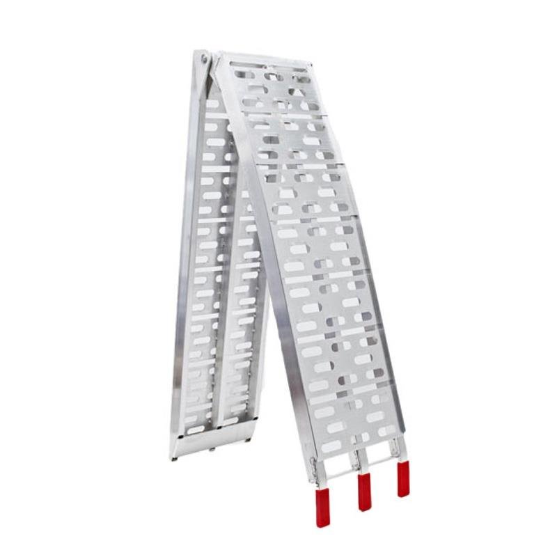 – Rampa plegable fabricada en aluminio. – Ideal para cargar motocicletas, cortadoras de césped, maquinaria de construcción, etc. – Se pliega para facilitar su almacenamiento. – Longitud abierta: 224 cm. – Ancho 28 cm. – Soporta hasta 330 kgs.